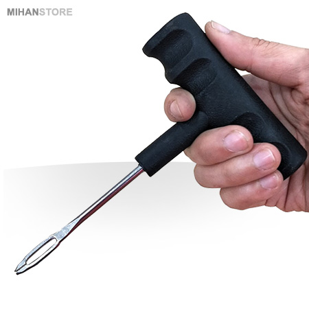با استفاده از کیت پنچرگیری لاستیک خودرو خودمان به سادگی و درصورت لزوم با نگاهی به راهنمای تصویری پشت بسته می توانیم پنچری لاستیک تیوبلس انواع خودروهای بزرگ و کوچک را برطرف کنیم. این محصول با ابعاد و استحکام حرفه ای برای کاربران مراکز خدمات خودرویی طراحی و ساخته شده است اما به همراه داشتن آن برای رانندگان به ویژه در سفر و عدم دسترسی به خدمات خودرویی بسیار کارآمد و کار راه انداز است و از اینکه چنین محصولی را در اختیار داریم احساس رضایت بسیاری خواهیم داشت. نحوه کار با آن نیز به این شکل است که در صورت مواجه شدن با پنچری لاستیک خودرو در اثر فرورفتگی میخ یا هر شی ء دیگر ابتدا یک عدد نخ داخل قلاب جا گذاری می شود. به نحوی که دو سر نخ به موازات قلاب هم اندازه باشد. سپس شیء عامل پنچری با استفاده از انبردست یا دم باریک از لاستیک خارج می شود و بلافاصله درفش سنباده -با همان زاویه ای که میخ از لاستیک خارج شده است- در محل پنچری قرار داده می شود تا مسیر سوراخ لاستیک کاملا برای قرار دادن نخ مربوطه باز و آماده سازی شود. پس از خارج کردن درفش بلافاصله قلاب حامل نخ به صورت کامل داخل لاستیک قرار داده می شود به گونه ای که نخ در داخل لاستیک آزادانه بچرخد سپس قلاب به اندازه ای که فقط سرنخ، بیرون لاستیک قرار گیرد بیرون کشیده می شود و نخ از سر قلاب که شکاف دارد آزاد می شود یا با تیغ یا سیم چین از نوک قلاب برید می شود. به شکلی که حداقل نیم سانتیمتر از نخ دولایه، بیرون لاستیک قرار گیرد. پس از آن باد لاستیک بالانس می شود.