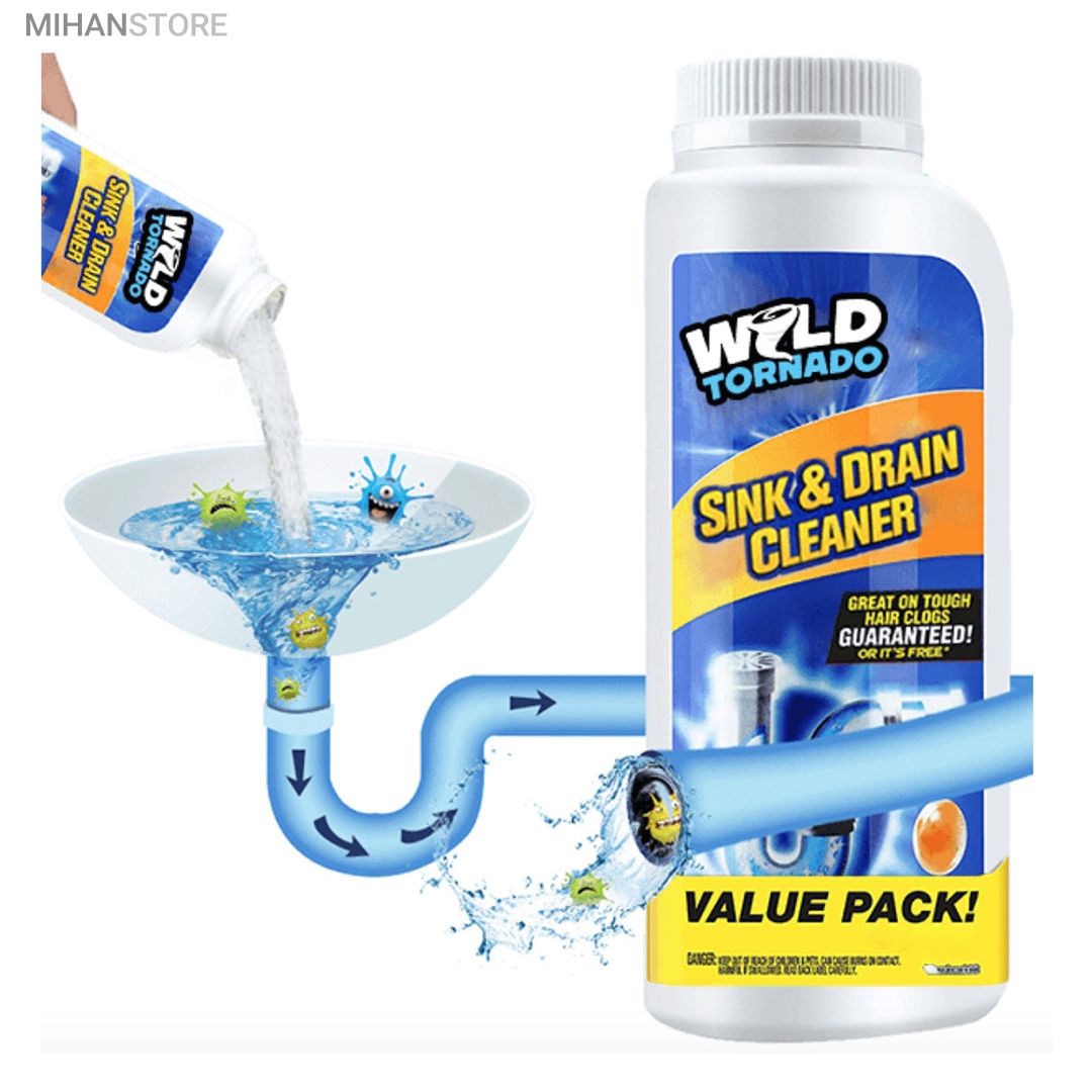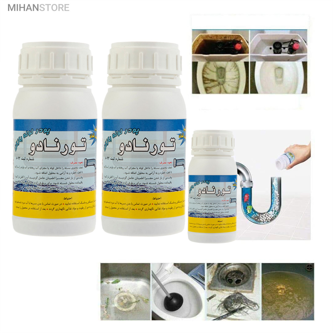 این محصول با قدرت فوق العاده و با فرمولاسیون جدید طی یک واکنش شیمیایی باعث باز شدن سریع لوله های فاضلاب، دستشویی، حمام و آشپزخانه و غیره شده و بوی نامطبوع را از بین می برد و هیچ گونه صدمه ای به لوله ها وارد نمی کند.با شستوشوی سبزیها، میوه یا غذا از روی ظروف مقداری جرم درون سیستم فاضلاب و لولهکشی قرار خواهد گرفت. با توجه به اینکه جرم درون لولهها بعد از مدتی باعث بسته شدن راه عبور آب خواهد شد، ممکن است با بسته شدن مسیر خروج آب و همچنین افزایش جرم، آسیبهای متنوعی به سیستم فاضلاب یا حتی لوازم درون منزل زده شود. حتی در بعضی موارد پیشآمده که در اثر این مشکل، سقف یا دیوار نیز دچار آسیب شده است. پودر لولهبازکن تورنادو با وزن 250گرم برای از بین بردن جرم و مانع بسیار کارساز خواهد بود. پودر لولهبازکن تورنادو را میتوان با آب بهصورت محلول استفاده کرد. پودر لولهبازکن را کمی درون سیستم فاضلاب ریخته و با اضافه شدن آب گرم به آن، میتوان مسیر خروج آب را باز کرد. در ادامه با آب سرد میتوان مسیر را بهصورت کامل شستوشو داد.