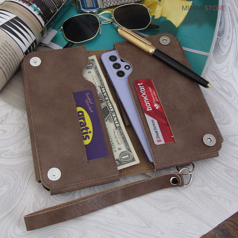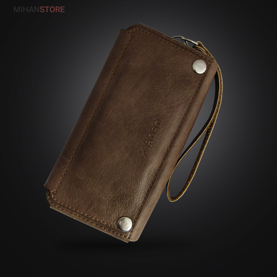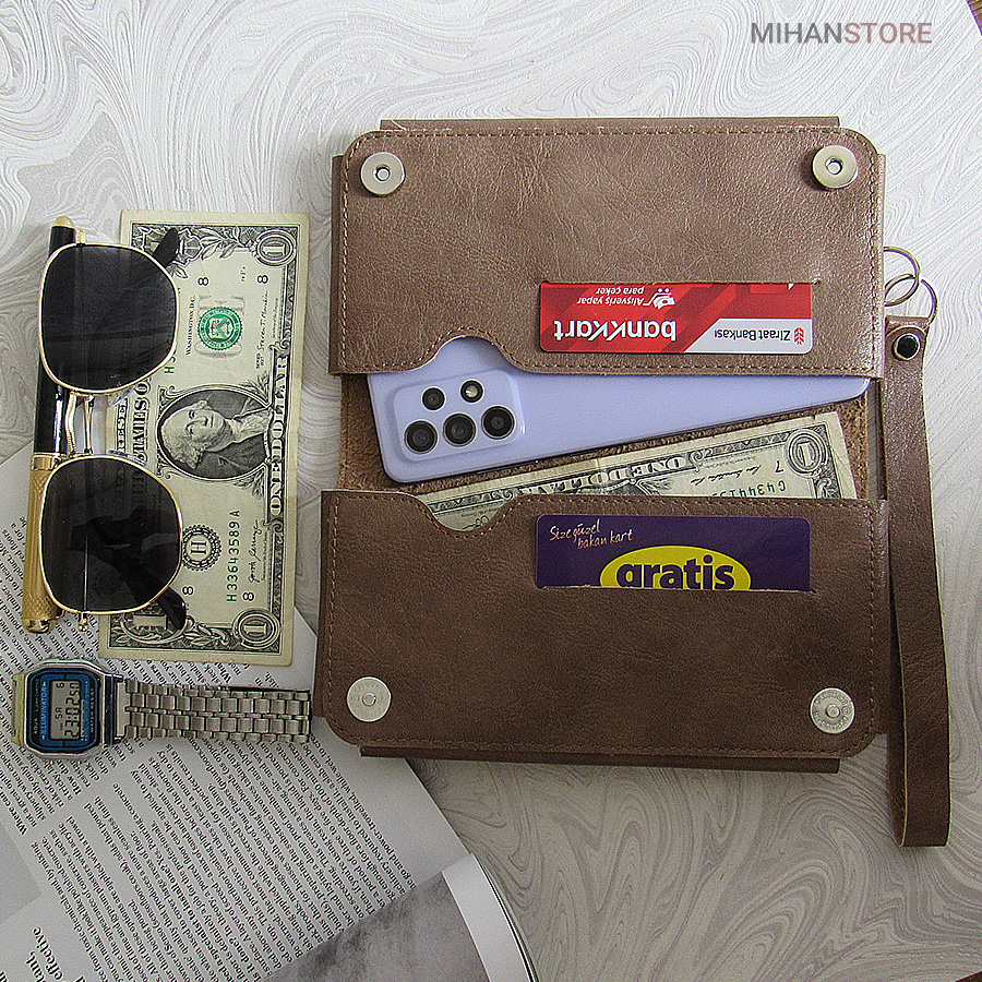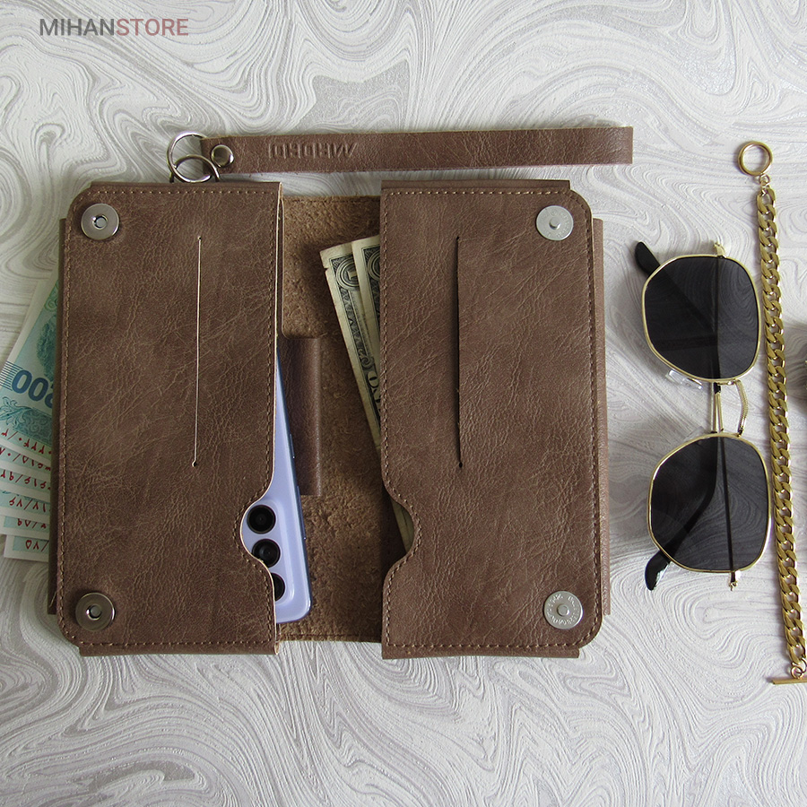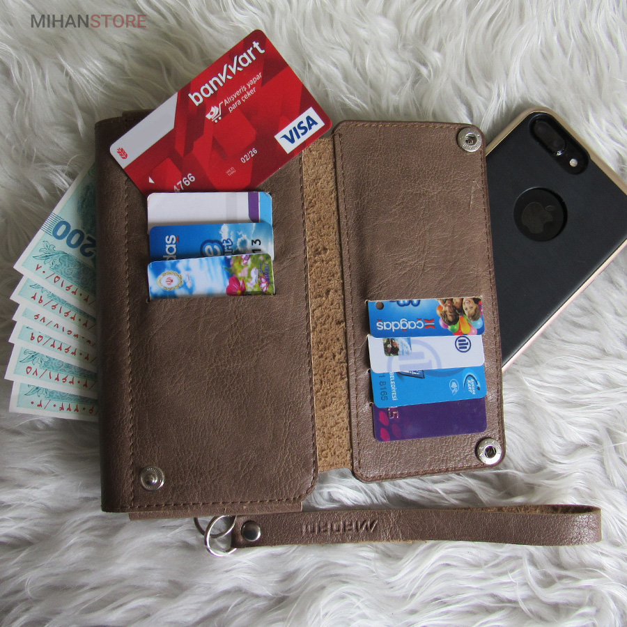 این کیف با دارا بودن دو جای موبایل، جای چندین کارت عابر بانک و جای پول با طراحی زیباعرضه شده. این مدل بسیار سبک بوده و بهترین طراحی از نظر قرارگیری تعداد زیادی از کارت های بانکی در بین هم رده های خود را دارد و همچنین جنس آن چرم مصنوعی درجه یک می باشد.