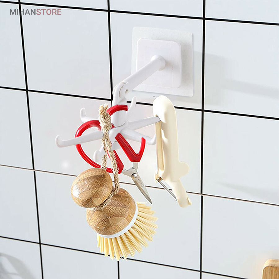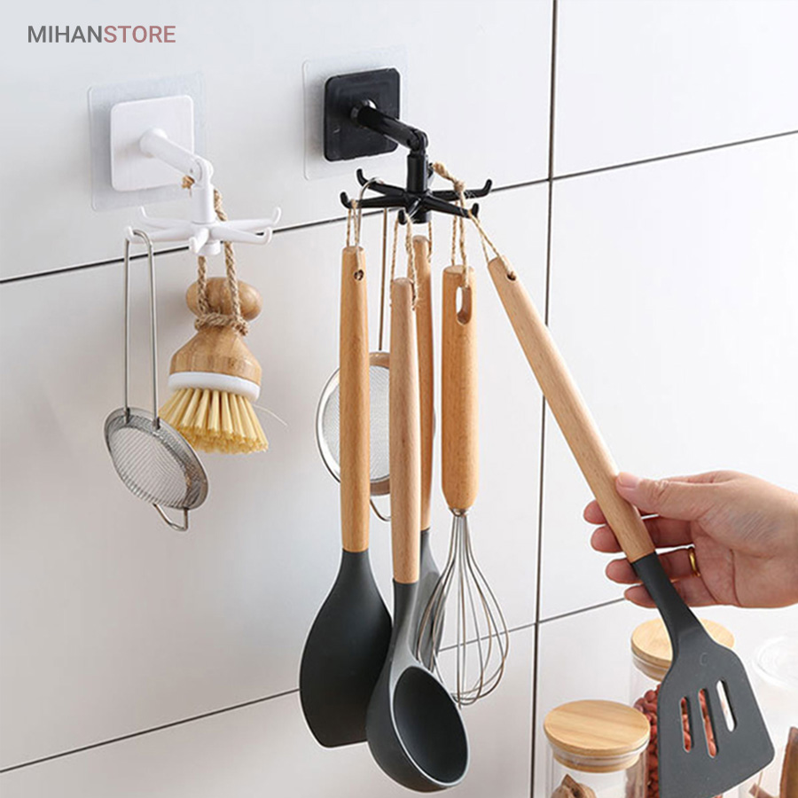 آویز گردان همه کاره با پایه چرخشی ، محصولی است کاربردی که تولید شده از جنس پلاستیک مقاوم و با کیفیت می باشد . این پایه که با استفاده از چسب قوی تعبیه شده در قسمت زیرین خود به دیوار متصل می شود دارای بازویی با قابلیت خم شدن در زاویه 180 درجه است ، بازویی که در انتهای سری خود یک آویز 6 شاخه دارد ، آویزی که بر روی هر یک از شاخه های آن می توانید لوازم و ابزاری نظیر کفگیر و ملاقه آویزان کنید تا در موقع نیاز به سادگی در دسترس شما باشند . قابلیت چرخش 360 درجه برای ساده تر شدن دسترسی به لوازم دیگر خصوصیت این آویز به شمار می رود که علاوه بر آشپزخانه می توانید در قسمت های مختلف دیگر نظیر اتاق ، داخل کمد و … برای آویزان کردن لوازم و وسایل مختلفی همانند کراوات ، کش مو و … استفاده کنید . با توجه به قابلیت خم شوندگی بازو می توانید علاوه بر دیوار ، آویز دیواری کفگیر و ملاقه را به زیر کابینت و یا سقف کمد نیز نصب و از آن استفاده کنید .