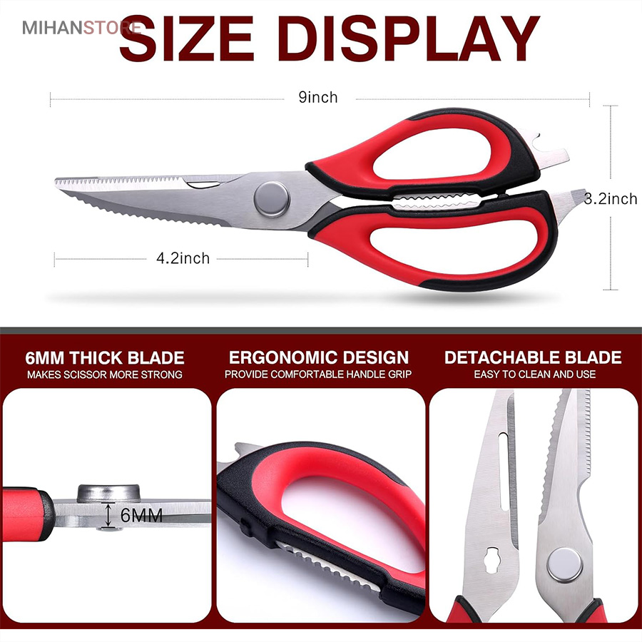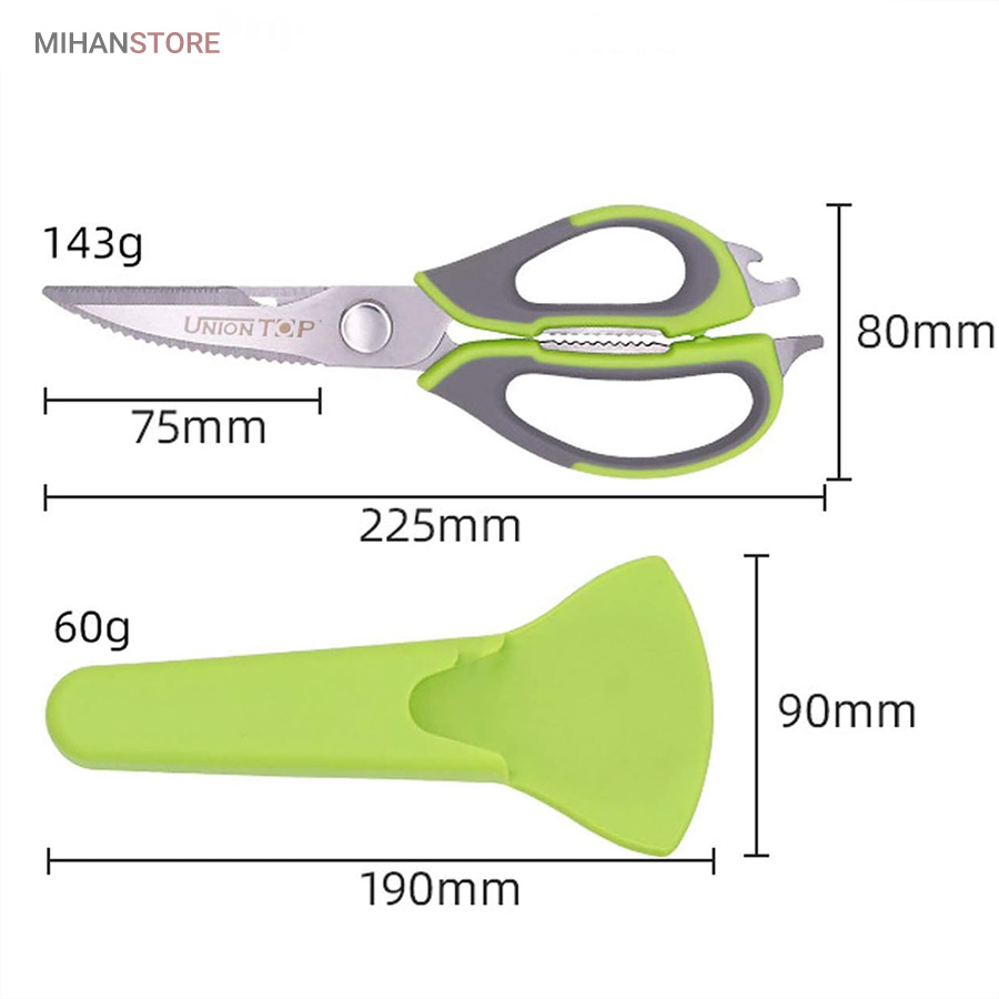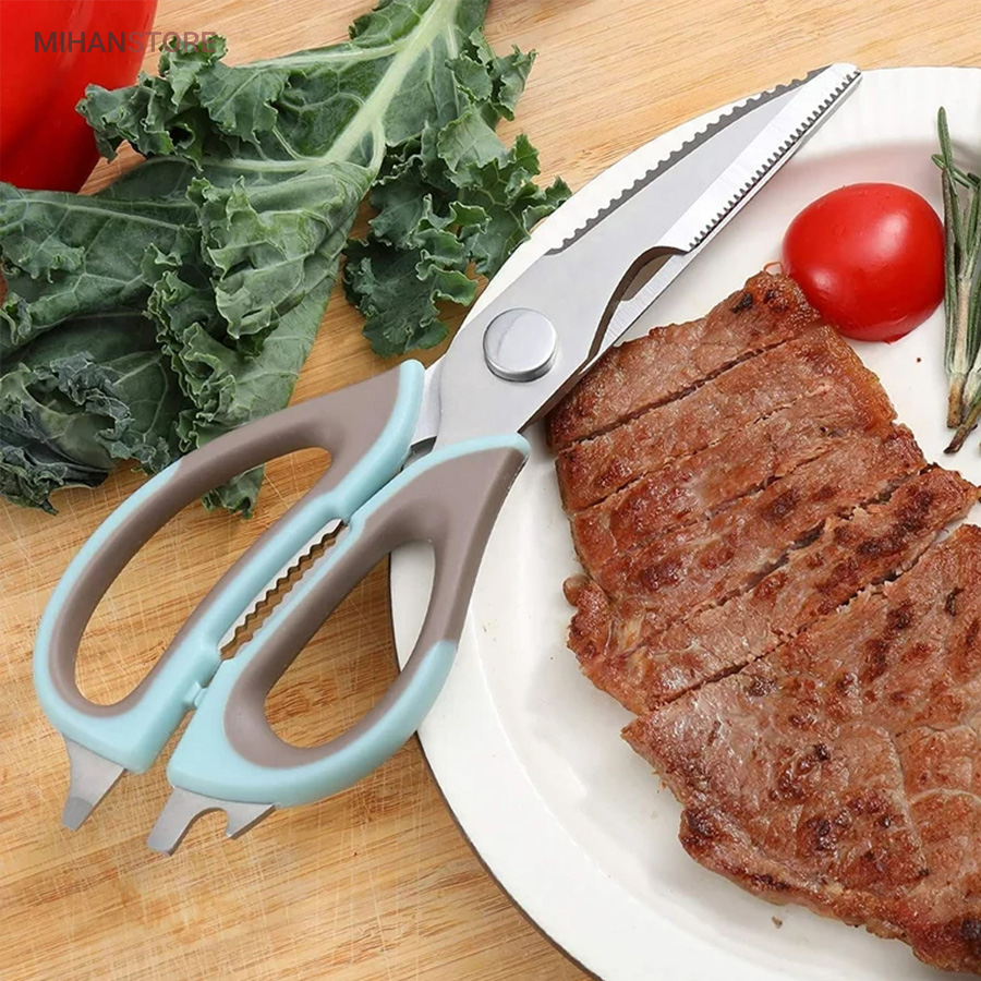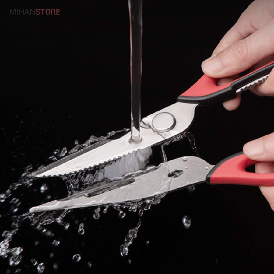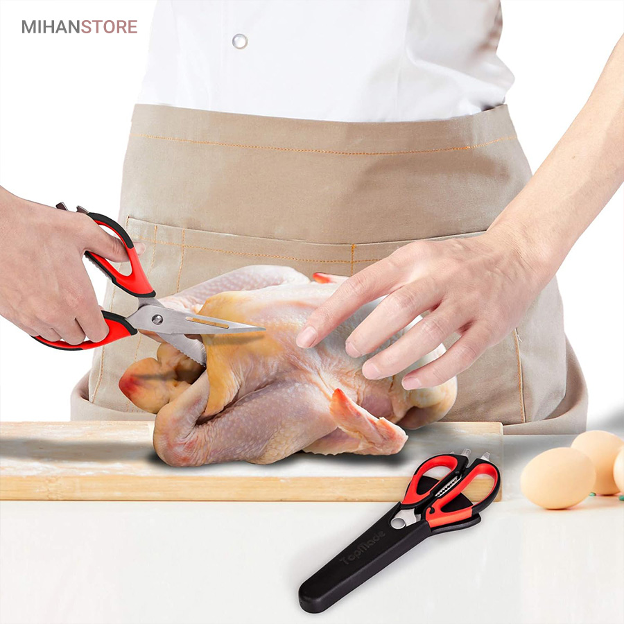 هم قیچی، هم بازکن، هم کابل کش و هم چاقو! این قیچی جادویی 8 کاره باورنکردنی در هر زمینه ای مفید خواهد بود. محصولی کاملاً جدید که باید در کار آشپزخانه خود داشته باشید و کار شما را آسان‌تر می‌کند و نمی‌توانید نزدیک آن باشید. در آشپزخانه می توانیم هنگام سرو مرغ، سبزیجات را خرد کنیم یا به راحتی استخوان ها را برش دهیم. می توانید از آن به عنوان کرکر فندقی یا گردو استفاده کنید. به راحتی می توانید درب بطری های خود را باز کنید. به طور خلاصه، به لطف قیچی جادویی 8 کاره، کاری که در زندگی روزمره انجام می دهید اکنون کاربردی تر شده است. قابل شستشو در ماشین ظرفشویی می باشد.