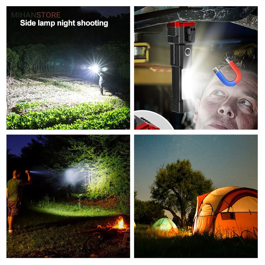 چراغ قوه دستی 8 کاره مدل led torch با قابلیت انجام کارهای فراوان از جمله 3 حالت نور- دارای چکش اتش نشانی-دارای تیغ مخفی برای بریدن کش و طناب.دارای مگنت اهن ربا برای چسبیدن به اهن و تعمیر خودرو- قابلیت استفاده بعنوان پاور بانک در مواقع اضطراری-قابلیت شارژ شدن توسط شارژر موبایل میباشد. این چراغ قوه پر کاربرد وسیله ای عالی برای مسافرت و کمپینگ و نگهداری در خودرو است و داشتن ان میتواند بسیار به شما کمک کند.