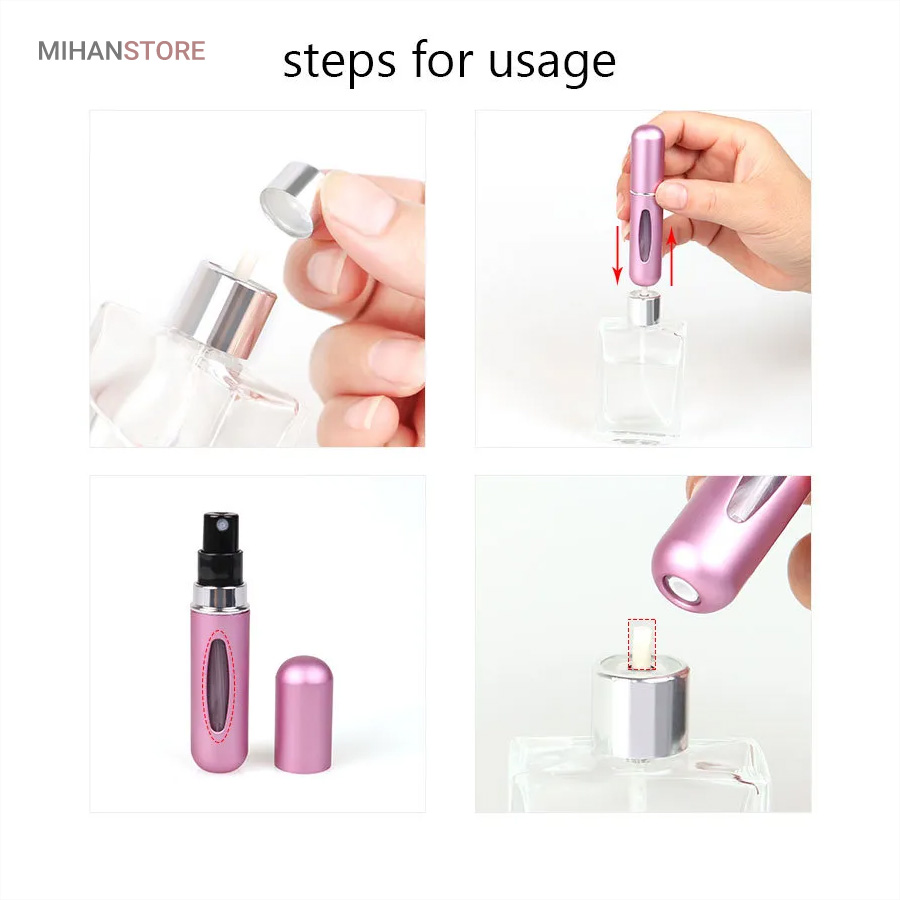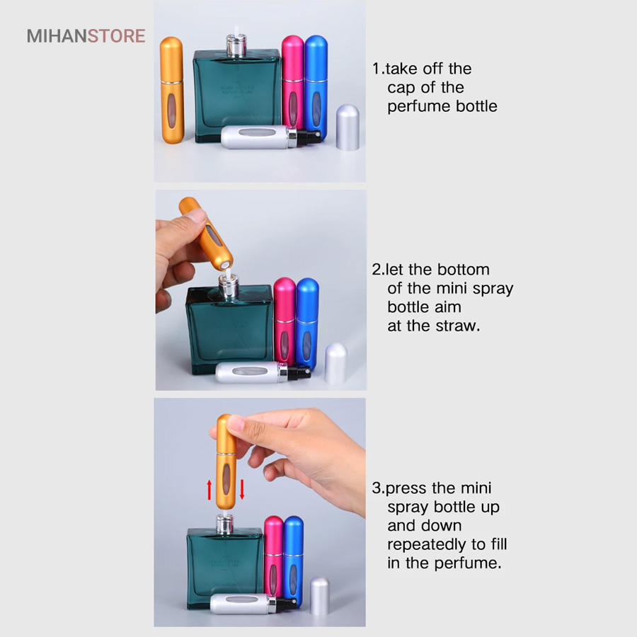 حتما برای شما هم پیش اومده که میخواید ادکلنتون همیشه همراهتون باشه ولی به دلیل حجم زیاد و سنگین بودن شیشه از اینکار منصرف میشید.این اتومایزر چاره کار شماست. به راحتی قابل شارژ و استفاده در همه جا هست. به سادگی قسمت اسپری شیشه عطر یا ادکلن خود رو برداشته و اتومایز عطر را از انتها بر روی شیشه ادکلن قرار داده و چند مرتبه فشار دهید تا مخرن آن به مقدار دلخواه شارژ شود. این محفظه نگهدارنده عطر جیبی علاوه بر سبکی مقاومت بسیار خوبی دارد و کیفیت آن به گونه ای است که هیچ گونه نشتی و هدررفت ادکلن و عطر در هنگام شارژ و یا حمل بطری عطر نخواهید داشت. حجم محفظه این اتومایزر 5 میلی لیتر است. محفظه نگهدارنده عطر اتومایزر مدل DR مناسب برای کسانی است که علاقه مند به همراه داشتن همیشگی عطر های خود هستند، با خرید یک بار از این محصول تا هر زمان که تمایل به مصرف عطرهای خود به صورت جیبی و قابل حمل داشته باشید، میتوانید استفاده نامحدود کنید. این وسیله فاقد عطر است و باید توسط شما با عطرهای شخصی خود پر شود این محصول در سفر های درون شهری و برون شهری قابل استفاده است و دیگر نیازی به حمل کل ظرف پرفیوم و عطر خود ندارید در نتیجه احتمال شکستن یا از بین رفتن ظرف اصلی پرفیوم شما صفر خواهد شد. نحوه پرشدن این محصول مشابه با پر کردن گاز فندک است.قسمت زیرین اتومایزر با ظرف پرفیوم است و به صورت تلمبه ای پر خواهد شد.