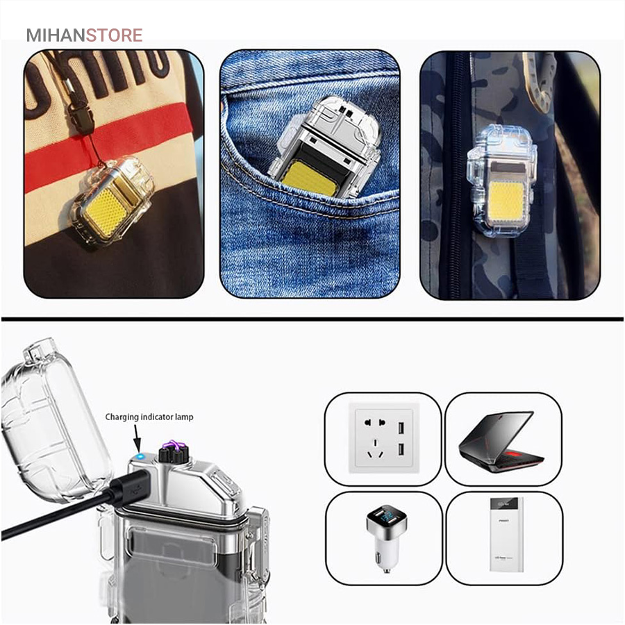 این مدل فندک بدون شعله است و نیازی به سوخت (گاز) ندارد. به همین خاطر استفاده از آن بسیار راحت است و کاربرد بیشتری نسبت به فندک معمولی دارد. در واقع منشا تولید حرارت در فندک پلاسما شبیه به قوس الکترونیک است؛ با حرارت پایین تر، که توانایی بالاتری در روشن کردن دارد و در هنگام وزش باد نیز قابل استفاده است و خاموش نمیشود. فندک الکتریکی (شارژی) چراغ قوه دار هدیه ای ارزنده و زیبا برای افرادی که دنبال محصولات لاکچری هستند. ویژگی منحصر به فرد این فندک ضدآب بودن آن است. یک پوشش پلاستیک محکم شفاف روی کل بدنه محصول قرار گرفته که نه تنها زیر باران، بلکه داخل آب (استخر، دریا و …) نیز قابل استفاده است. شما با خرید این محصول جذاب نه تنها صاحب یک فندک کاربردی خواهید شد بلکه یک چراغ قوه کوچک جیبی را نیز از آن خود خواهید کرد! روی بدنه این فندک یک چراغ COB سه حالته تعبیه شده که با دکمه پاور بغل آن روشن و خاموش میشود. (حالت نور کم، نور چشمک زن و نور زیاد)این فندک پلاسما یک فندک ضد آب و ضد باد است که می توانید در مواقع اضطراری به آن اعتماد کنید. روزهایی که باید نگران خشک نگه داشتن کبریت ها یا خاموش شدن شعله فندک های معمولی باشید، گذشته است. فندک الکتریکی (شارژی) چراغ قوه دار می تواند به طور مداوم قوس پلاسمای آتش را حفظ کند، حتی از حین بادهای 80 مایل در ساعت. با یک قاب بیرونی بادوام، مهر و موم حلقه فلزی و یک قفل، دیگر نگران ورود آب و خراب شدن این فندک قوس الکترونیک نخواهید بود. صرف نظر از اینکه از آن برای راهاندازی آتش در حیاط خلوت، کمپینگ یا چیزهای ضروری تر مانند شرایط بقا یا اضطراری استفاده می کنید، یک فندک قابل اعتماد خواهید داشت که می تواند در حال حرکت نیز شارژ شود.