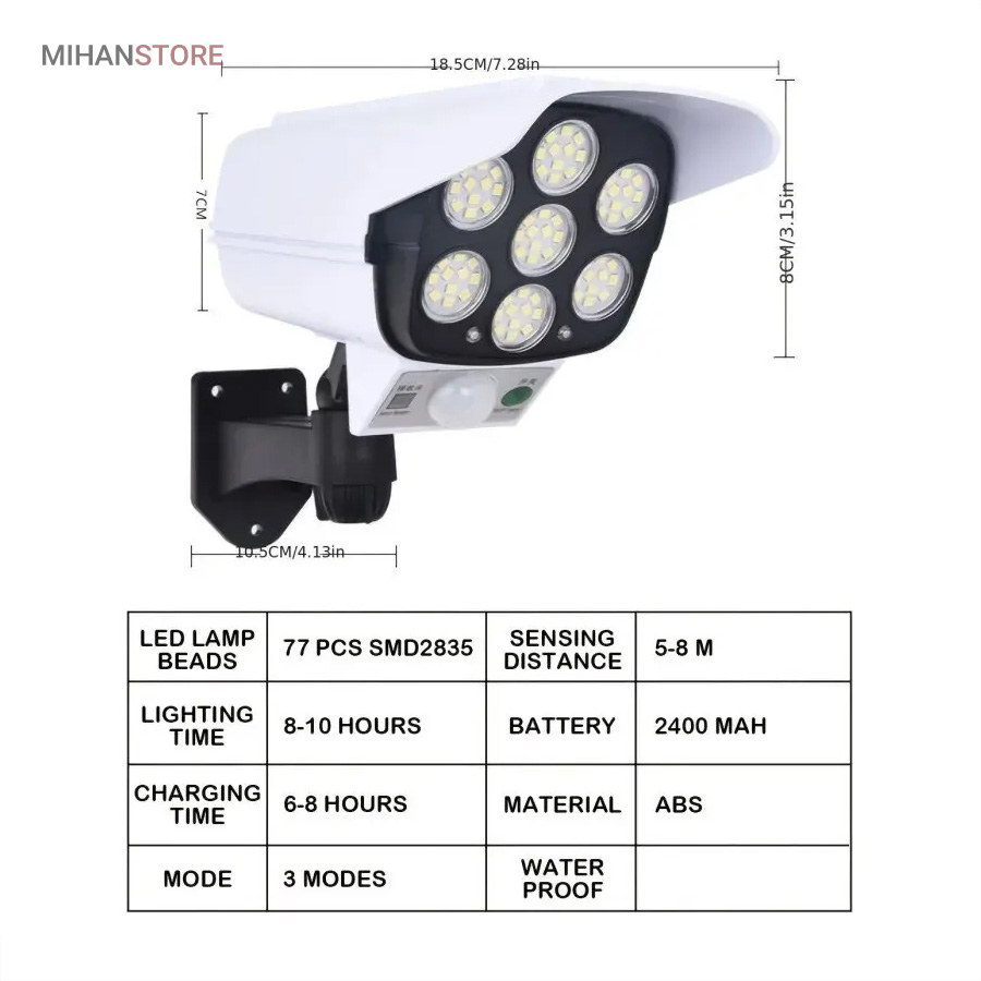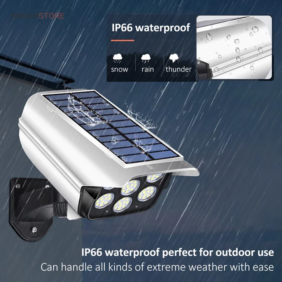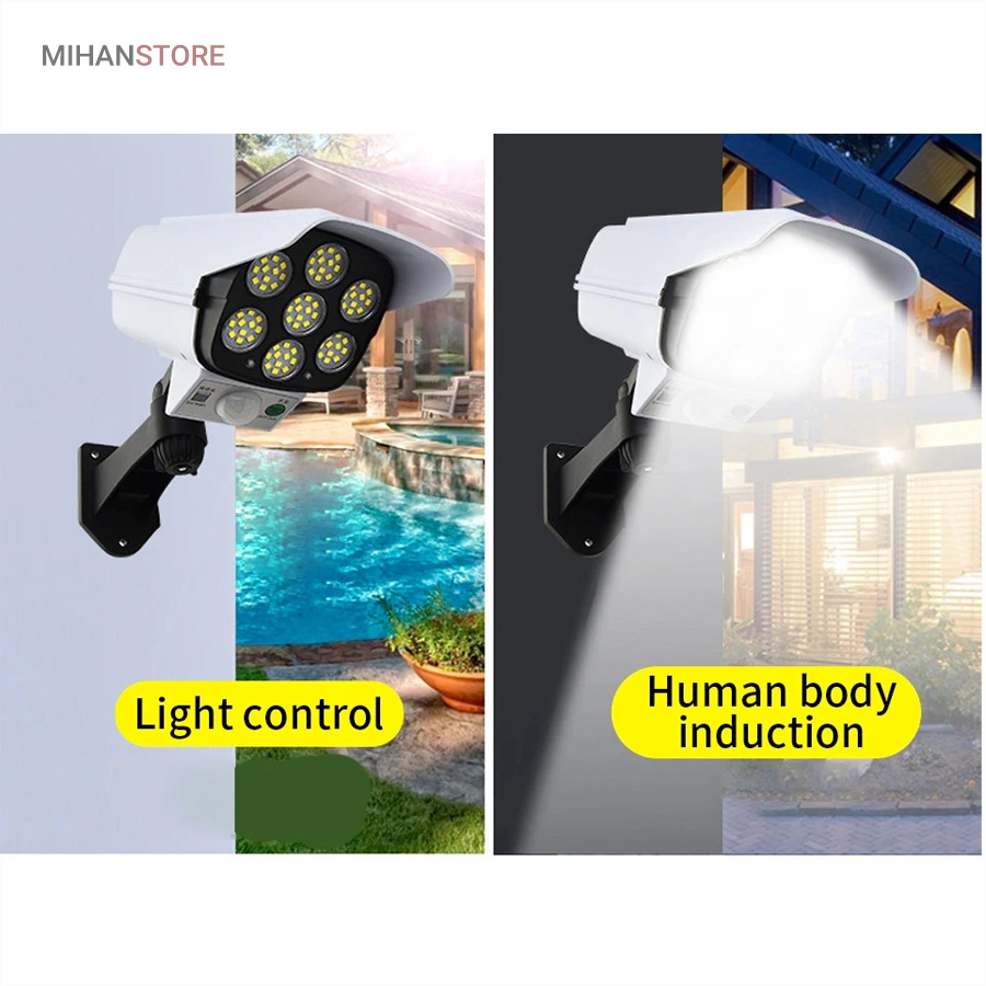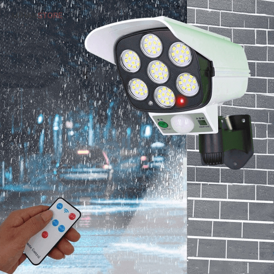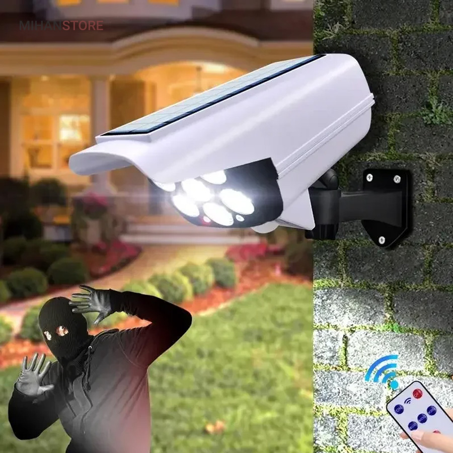 پروژکتور های خورشیدی طرح دوربین مدار بسته پروژکتور هایی هستند که حالت سیکوریتی دارند و حدودا بین 180 تا 200 وات نور تولید می کنند و شامل دو باتری لیتیومی 3.7 ولتی و پنل 3 واتی بزرگ هستند. دوربین های به کار رفته در این پروژکتور ها 2 باتری هستند و کیفیت بالاتری دارند در صورتی که دوربین های موجود در بازار به صورت تک باتری نیز وجود دارد. توانایی تابش 360 درجه دارند و پایه دارند. این نوع پروژکتور ها حتما باید زیر آفتاب باشند ولی در سایه نیز می توانند کار کنند اما نوری که ایجاد می کنند کمتر است و بازدهی کمتری دارند در این صورت باتری زودتر خراب می شود. بهتر است از این نوع پروژکتور ها در مکان های پر تردد استفاده شود. نور بسیار خوبی دارند و ارتفاع نصب آن ها بهتر است که بیش از 3 متر نباشد چرا که اگر سنسور PRD در ارتفاع بیش از 3 متر قرار گیرد حساسیت خود را از دست می دهد و قابلیتی که باید داشته باشد را ندارد. از روی پنل در این پروژکتور ها می توان متوجه خاموش یا روشن بودن آن شد به این صورت که مدار هایی درون آن وجود دارد که با تغییر ولتاژ از پنل و صفر شدن پنل، شب شدن یا تاریک شدن تشخیص داده می شود یعنی سنسور پتانسیلی دارند و همچنین دارای ریموت هستند. این نوع از پروژکتور ها را می توان زمان بندی کرد. این پروژکتور ها از پر فروش ترین جنس ها هستند.این یک لامپ دیواری خورشیدی با طراحی ظاهری دوربین مداربسته شبیه سازی است که می تواند در مکان های مختلف مانند دروازه ، راهرو ، حیاط و غیره نصب شود.