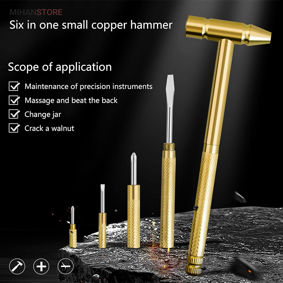 محصولی جدید ، کاربردی و البته با طراحی ظاهری زیبا است که تولید شده از جنس فلز مقاوم با تنوع رنگ طلایی می باشد . این کالا در حالت معمول یک چکش کوچک به طول کلی 16 سانتی متر با سری 5.4 سانتی متری است که از آن می توانید برای کارهای کوچک نظیر زدن میخ به دیوار استفاده کنید. اما تمام وجه تمایز کالا درون چکش است. اگر به جز چکش به پیچ گوشتی نیاز پیدا کردید ، کافی است انتهای دسته چکش را به صورت پیچی باز کنید ، خواهید دید یک پیچ گوشتی دو سر از درون آن خارج می شود که می توانید متناسب با نیاز ، آن را به کار گیرید .اما اگر به یک پیچ گوشتی کوچک چهار سو نیاز داشتید ، نگران نباشید ، انتهای دسته پیچ گوشتی دو سو را باز کنید ، یک پیچ گوشتی چهارسو را خواهید دید که نیاز شما را پاسخ خواهد داد ، ولی این چکش و پیچ گوشتی مجهز تر از آن است که تصور می کنید . انتهای پیچ گوشتی چهار سو یک مینی پیچ گوشتی دو سوی دیگر نیز تعبیه شده که در انتهای خود یک پیچ گوشتی ریز چهار سو دارد ، بدین ترتیب محصول شامل یک چکش و چهار پیچ گوشتی با سایز های متنوع تعبیه شده درون دسته خود می باشد که در بنا بر نوع نیاز می توانید از آنها استفاده کنید . سهولت در حمل و جابه جایی و نیاز به کمترین فضای ممکن برای نگهداری از جمله خصوصیات دیگر چکش پیچ گوشتی دار به شمار می رود .