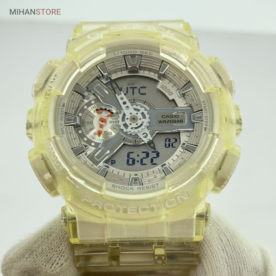 G-SHOCK عناصر دنده ای شکل عمقی سه بعدی ایجاد می کنند و عقربه های آنالوگ به G-SHOCK جلوه قوی و قدرتمند آن را می دهند. G-SHOCK به گونه ای طراحی و ساخته شده است که علاوه بر استحکام مطلق و ضد ضربه بودن، در برابر آب تا 20 بار نیز مقاوم بوده و همچنین دارای خواص ضد مغناطیسی برای زمان دقیق می باشد. GA-110 همچنین دارای بسیاری از عملکردهای مفید مانند زمان جهانی، کرونومتر، تایمر شمارش معکوس و هشدارهای روزانه است.