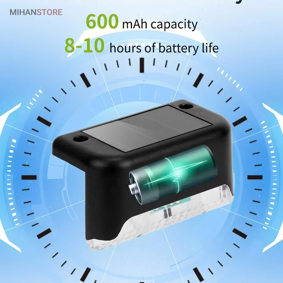 باتری لیتیومی قابل شارژی در این چراغ تعبیه شده‌است که انرژی الکتریکی را در طول روز در آن ذخیره می‌کند. شما می توانید به راحتی باطری این محصول رو تعویض کنید. برای راه اندازی این محصول کافیست یک طلق که در دستگاه تعبیه شده را بکشید.طول عمر بیش از ۵۰۰۰ ساعتی این چراغ و شارژ با پنل خورشیدی، نکات قوت دیگر آن است. علاوه بر این، نگران استفاده از چراغ لب پله‌ای در فضای باز نباشید. استاندارد مقاومت این محصول در برابر آب و رطوبت و گرد و غبار، خیال شما را از کارکرد مناسب آن راحت می‌کند.