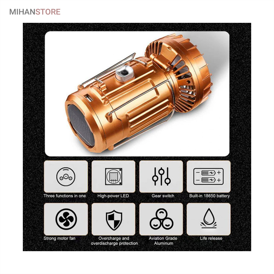 میهن استور - خرید پستی چراغ کمپینگ خورشیدی دارای پنکه و پاوربانک