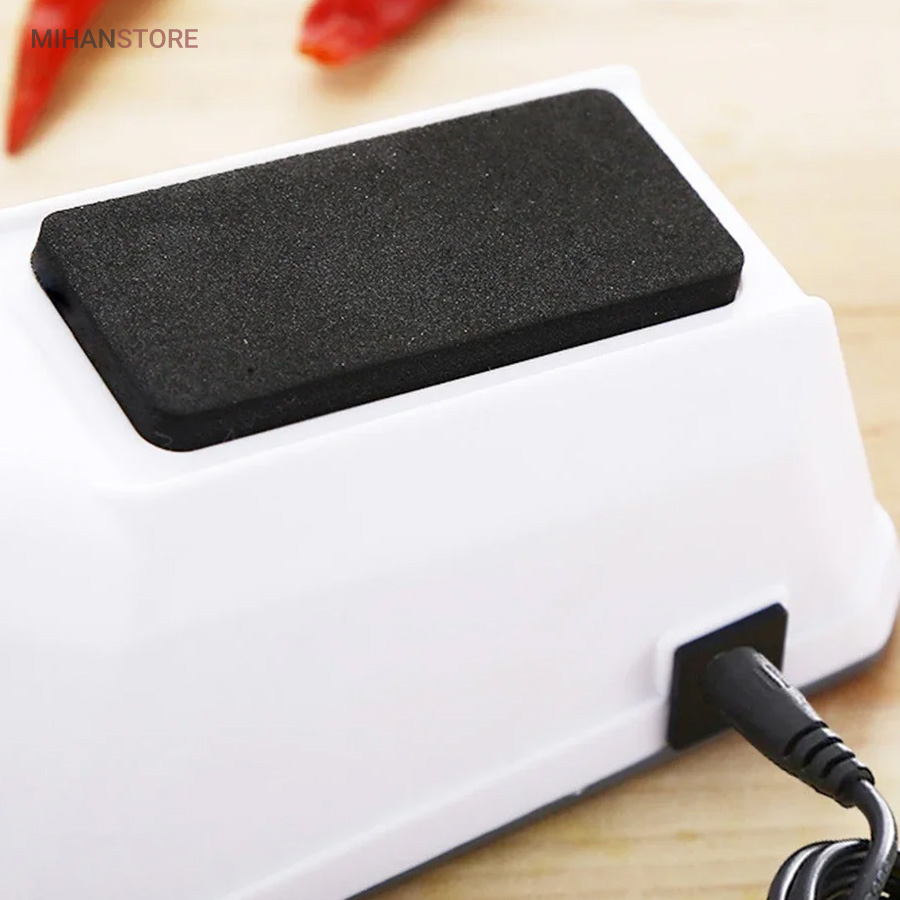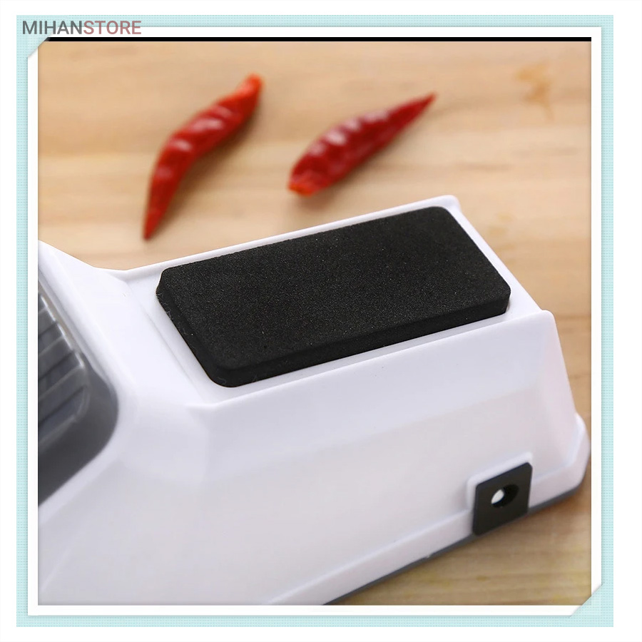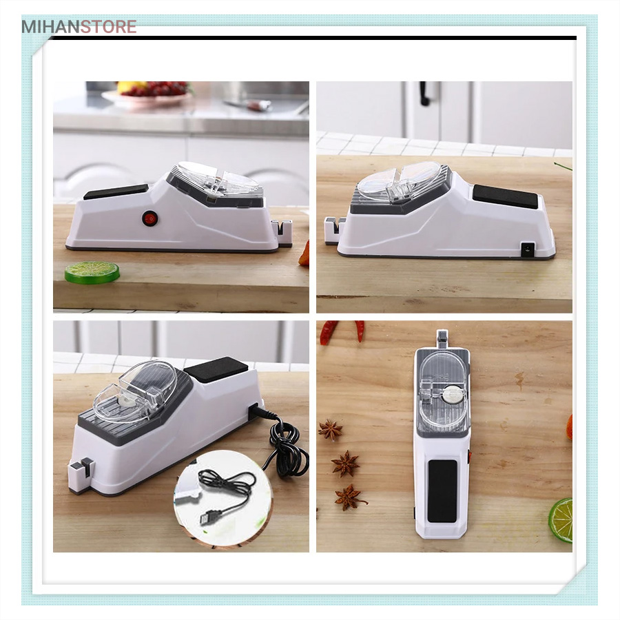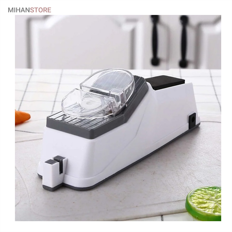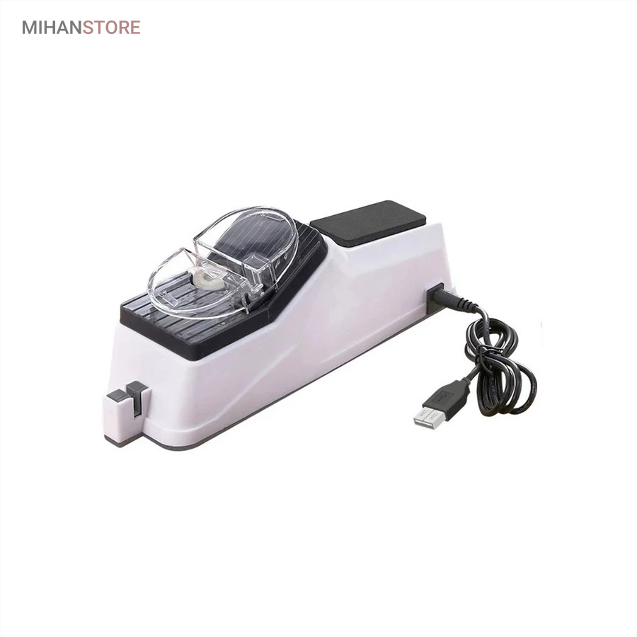 محصولی پرکاربرد که وجود آن در هر آشپزخانه ای لازم است. چاقو تیز کن برقی در کوتاه ترین زمان ممکن سطح انواع لوازم نوک تیز مانند کاردهای گوشت بری، میوه بری و حتی قیچی را تیز خواهد نمود که این امر سرعت کار پخت و پز و خیاطی شما را افزایش خواهد داد. وجه تمایز این نمونه با نمونه های قدیمی، کوچک و قابل حمل بودن محصول است. همچنین در بخش قرارگیری چاقو کاور محافظ قرار داده شده تا از آسیب احتمالی جلوگیری نماید. دستگاه چاقو تیز کن با کابل USB شروع به کار می کند و جنس دسته و بدنه آن از پلاستیک مرغوب است.