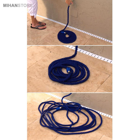 طول این شیلنگ کارواش حدود 5 متر می باشد که به محض باز کردن شیر آب طول آن به 3 برابر افزایش یافته و 15 متر می شود. این شیلنگ جادویی به صورت خودکار با باز کردن شیر آب تا سه برابر طول اولیه اش گسترش می یابد و آب را با فشار و به صورت اسپری و معمولی بیرون می پاشد. فقط کافیست تا شیر آب را باز کنید تا این شیلنگ تا سه برابر اندازه اولیه خود قد کشیده و بزرگ شود و با بستن شیر آب به اندازه اولیه خود باز گردد و به اندازه یک بسته دستمال کاغذی شود! این شیلنگ که از یک لایه قابل انعطاف ضخیم درونی و یک لایه تاشو بیرونی ساخته شده از جنس مش بافته شده ی قوی است و شبیه به هیچ شیلنگ دیگری نیست و با ساختار خارق العاده ، استفاده از آن باعث رضایت شما شده و شما میتوانید به راحتی از آن در داخل خانه و حیاط و کارواش ماشین و شتشوی شیشه ها و دیوار و باغبانی و …. استفاده کنید. شیلنگ جادوئی ایکس هوز با وزنی حدود یک پوند (450 گرم) شما را از شر مشکلات شیلنگهای سنگین و بلند راحت می سازد. طول این شیلنگ کارواش حدود 5 متر می باشد که به محض باز کردن شیر آب طول آن به 3 برابر افزایش یافته و 15 متر می شود. شما میتوانید به راحتی از شلنگ ایکس هوز در داخل خانه و حیاط و کارواش ماشین و شتشوی شیشه ها و دیوار و باغبانی و …. استفاده کنید.