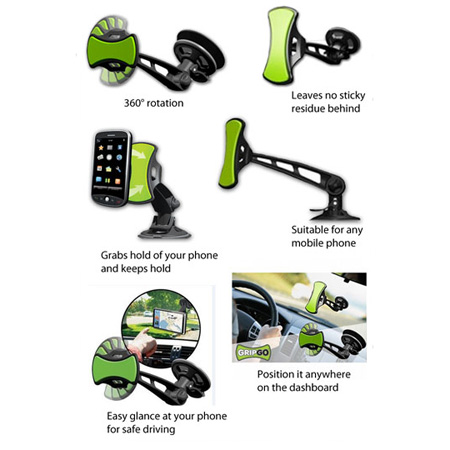 GRIP GO وسیله ای جدید و کارآمد می باشد که برای نگهداری موبایل و تبلت در اتومبیل طراحی شده است. GRIP GO امکان چرخش 360 درجه و تنظیم ارتفاع را دارا می باشد که با توجه به نیاز خود می توانید آن را بچرخانید و یا بالا و پایین کنید. این محصول به راحتی بر روی شیشه و یا داشبورد اتومبیل نصب می شود و برای همه گوشی های موبایل قابل استفاده می باشد. از این محصول می توانید بر روی میز کار خود نیز استفاده نمایید. با استفاده از GRIP GO دیگر نگران لیز خوردن و یا گم کردن موبایل خود در اتومبیل نباشید!