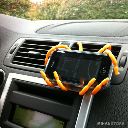 نگهدارنده عنکبوتی موبایل Spider Grip، پایه‌ی نگه‌دارنده‌ای سبک و انعطاف‌پذیر است که گوشی‌های موبایل را با برند، ابعاد و سایزهای مختلف پشتیبانی می‌کند. فرقی نمی‌کند روی میز استفاده شود، به جایی آویخته شود یا درون خودرو نصب شود. شرکت تولید کننده، پایه‌ی نگه ‌دارنده‌ی سبکی ساخته و همان‌طور که از اسمش پیداست، ظاهری شبیه یک عنکبوت دارد. کارکردن با آن راحت است و به سایز یا برند خاصی محدود نیست. این پایه تنها 33 گرم وزن دارد و دارای 8 پایه با مفاصلی انعطاف‌پذیر است. این مفاصل شما را قادر می‌سازند تا عنکبوتتان را به هر فرمی که می‌خواهید شکل دهید و پایه‌ی دلخواهتان را بسازید. علاوه‌بر گوشی‌های موبایل، برای نگهداری دوربین عکاسی، تبلت و دستگاه‌های GPS هم می‌توان از این پایه استفاده کرد. ساختار این عنکبوت، از مفتول‌های فلزی تشکیل شده است که روکشی ضخیم از لاستیک آن را پوشانده است. این پوشش لاستیکی نه‌تنها مانع از ایجاد خط‌وخش روی بدنه‌ی گوشی می‌شود؛ بلکه از امکان لغزش روی سطح می‌کاهد.