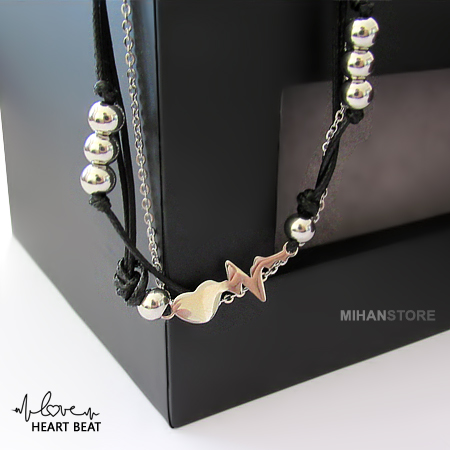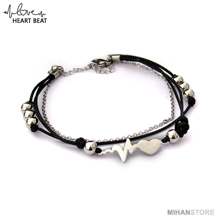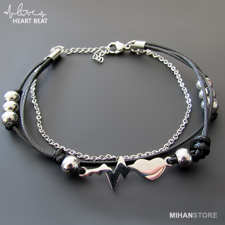 میهن استور - خرید پستی دستبند چرم و استیل طرح ضربان قلب