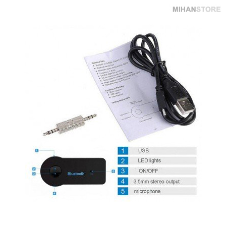 همواره به دنبال این هستید تا آهنگ های موجود در داخل موبایل و یا تبلت خود را با بلندگوی داخل اتومبیل پخش نموده و از جدید ترین آهنگ های خود در داخل اتومبیل لذت ببرید. دانگل بلوتوث AUX خودرو محصولی است که این رویا را بدون نیاز به هیچ سیمی و از طریق Bluetooth بر آورده می کند و تنها با اتصال آن به پورت AUX  پخش اتومبیل به راحتی قادر خواهید بود که آهنگ های خود را داخل اتومبیل پخش نمایید. صبر کنید این تنها کارایی این وسیله کوچک و کاربردی نیست! شما می توانید از این وسیله به عنوان هندزفری استفاده نموده و تماس های خود را داخل اتومبیل بدون نیاز به گوشی خود به آسانی پاسخ دهید. این وسیله حتی به تمامی پخش کننده های دیگر نیز که پورت AUX دارند وصل شده و گوشی موبایل و یا تبلت شما را به آن اتصال می دهد.
