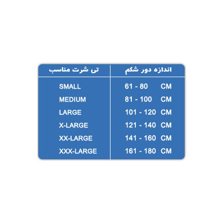 جدول سايز بندي تيشرت: