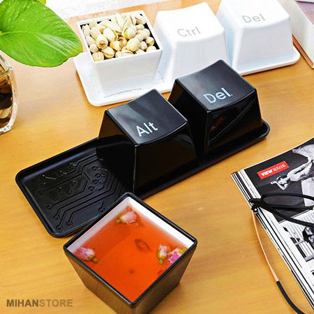 پیاله یا لیوان 3 تایی یک محصول جدید با طراحی ویژه و جالب می باشد که بصورت دکمه های کیبورد طراحی شده و کلمه های Ctrl - Alt - Delete بر روی انها نوشته شده که در صورت قرار دادن بر روی سینی مخصوص کاملا شبیه به صفحه کیبورد می باشد‏.‏ این لیوان های زیبا به گونه ای طراحی شده اند که شبیه به ماگ یا پیاله هم هستند وبه نوعی کارکرد چند منظوره دارند و شما می توانید برای سرو انواع سالاد و یا تنقلات نیز از این ماگ ها استفاده کنید و زیبایی و جلوه خاصی به میز پذیرایی خود بدهید‏.‏