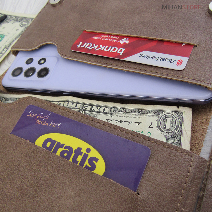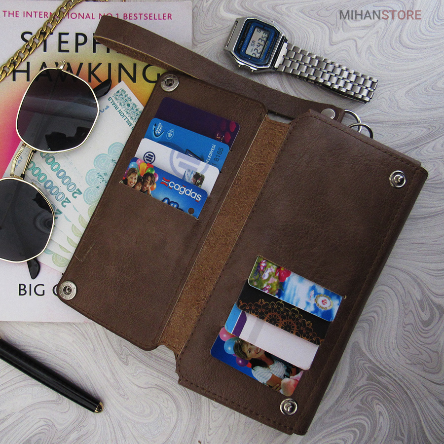 این کیف با دارا بودن دو جای موبایل، جای چندین کارت عابر بانک و جای پول با طراحی زیباعرضه شده. این مدل بسیار سبک بوده و بهترین طراحی از نظر قرارگیری تعداد زیادی از کارت های بانکی در بین هم رده های خود را دارد و همچنین جنس آن چرم مصنوعی درجه یک می باشد.