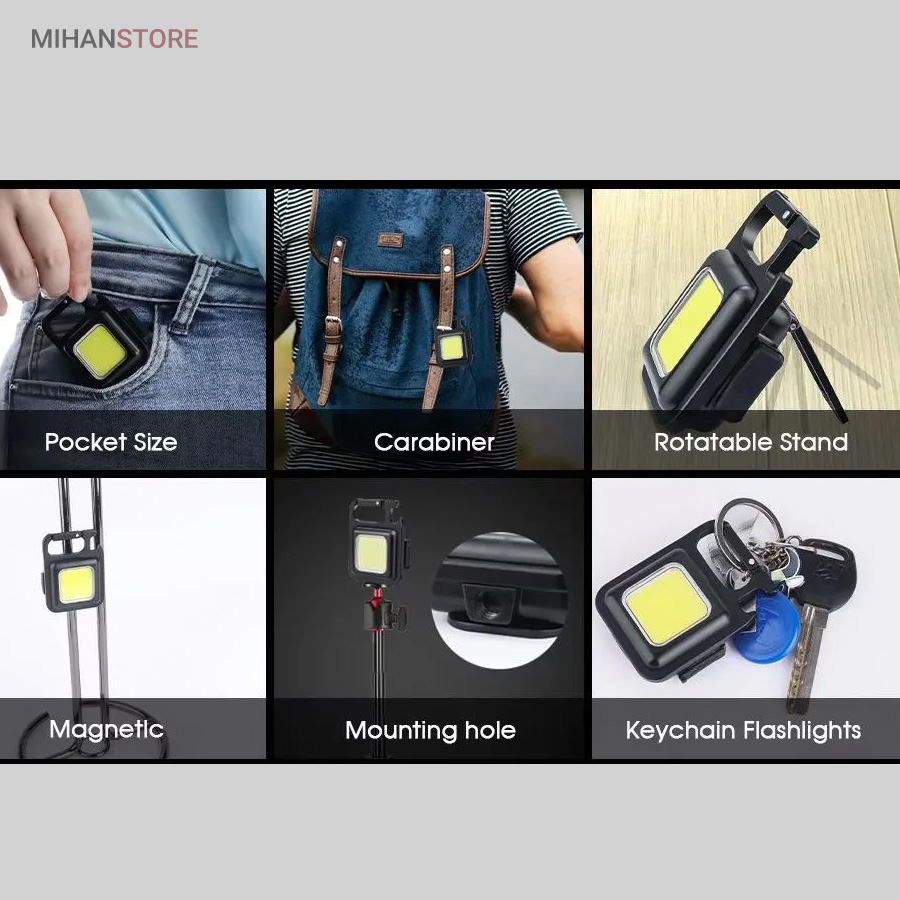 وقتی زمان شارژ  مجدد فرا می رسد، کافی است آن را به هر منبع تغذیه USB وصل کنید. این چراغ  قوه شارژی USB توسط یک باتری داخلی قابل شارژ با ظرفیت 500 میلی آمپر  ساعت، کابل شارژ تایپ C به USB تغذیه می شود. معمولاً حدود 2 ساعت طول  می کشد تا کاملاً شارژ شود. پایه آهنربایی  قوی و دسته قابل چرخش به شما امکان می دهد در حین کار دستان خود را رها  کنید. طراحی آهنربا به لامپ اجازه می دهد تا به هر فلزی متصل شود و دسته  قابل تاشو 180 درجه اجازه می دهد تا لامپ در زوایای مختلف قرار گیرد یا در  مکان های خاصی آویزان شود.این چراغ قوه  جاکلیدی می تواند نورهایی با حداکثر 800 لومن ساطع کند. این یک نور روشن با  زاویه گسترده ارائه می دهد. LED فنی بزرگ COB اجازه می دهد تا از این چراغ  به عنوان چراغ کار کوچک و چراغ اضطراری استفاده شود. چراغ قوه قابل حمل دارای کارابینی است که به راحتی به حلقه کلید یا کیف وصل می شود و در  برابر آب و ضربه مقاوم است. از طرف دیگر، بطری بازکن خوبی است. شما می  توانید از آن در سناریوهای مختلفی مانند کمپینگ، پیاده روی سگ، جستجوی  چیزها، تعمیر استفاده کنید.