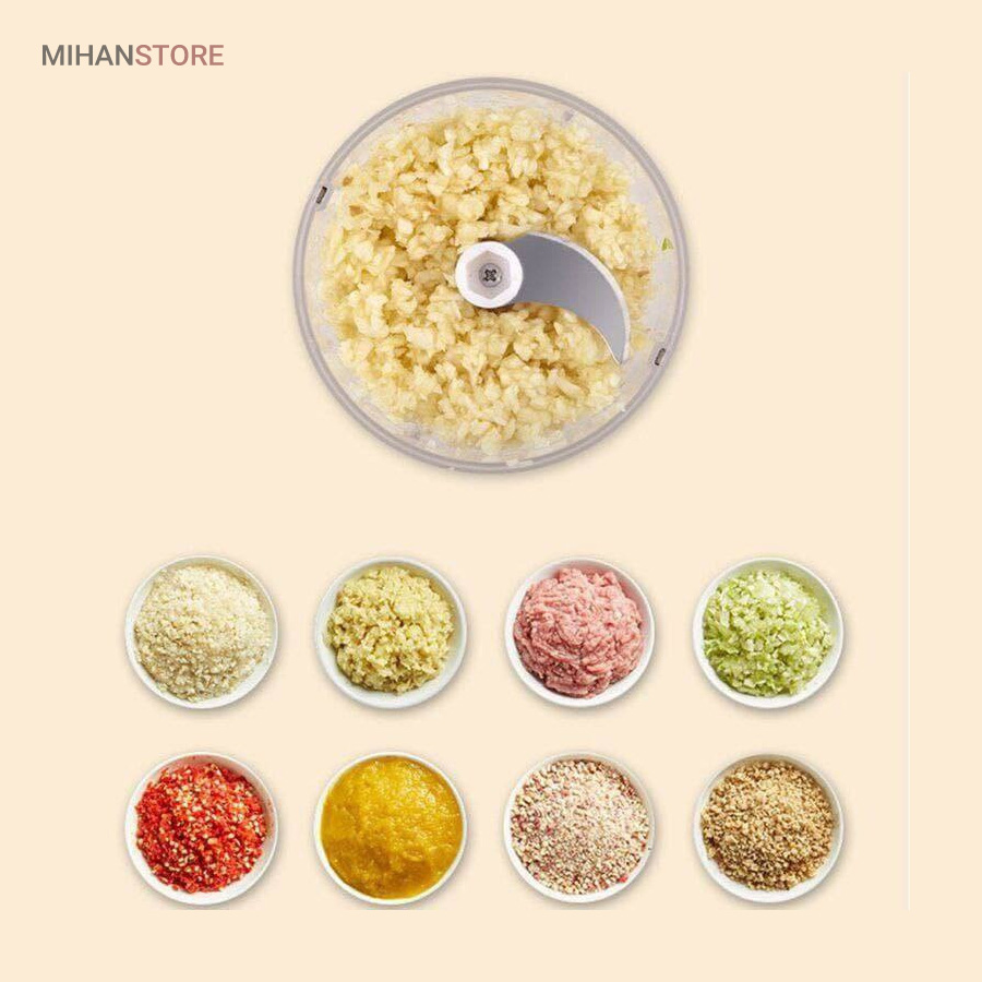 مینی خردکن شارژی یک خردکن 3 تیغه تیز است که به عنوان یک وسیله کاربردی برای خرد و میکس کردن سیر ، زنجبیل ، فلفل ، هویج ، سبزیجات ، پیاز و موارد دیگر بسیار مناسب است. طراحی عملکرد کلید لمسی مینی خردکن شارژی باعث می شود دست شما آزاد باشد تا موقع کار به کارهای دیگر خود برسید.این دستگاه با یک کابل USB و با ۳ ساعت شارژ ، می تواند از عمر طولانی باتری تا ۳۰ روز و استفاده گاهی اوقات لذت ببرید. این خردکن شارژی رو میتونید مسافرت یا کمپینگ هاتون هم همراه ببرید و از دست خرد کردن راحت بشید.این دستگاه ضدآب بوده و آب از محفظه زیرین به بالا و موتور نفوذ نمیکنه  این دستگاه از پلاستیک ABS ساخته شده و بسیار مقاوم بوده و همچنین تیغه ها ضدزنگ بوده.