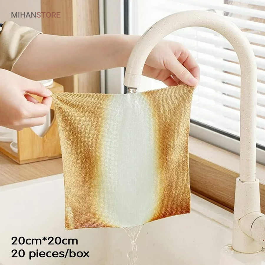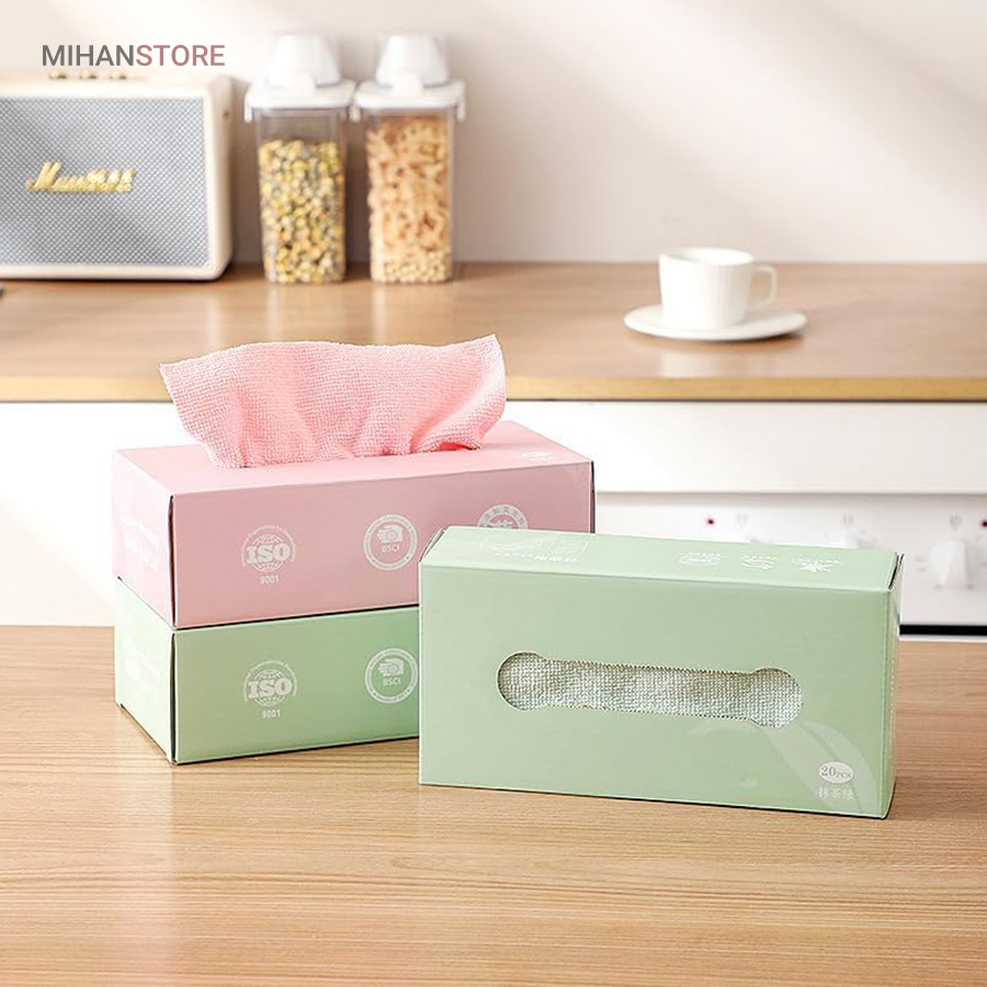 دستمال حوله ای آشپزخانه میکروفایبر 20 عددی مناسب شستشو و آبگیری ظروف و سطوح داخل آشپزخانه  با قدرت جذب بسیار بالا، بدون پرزدهی و شستشوی راحت و همچنین قابل استفاده برای تمیز کردن صفحه موبایل، مانیتور، تلویزیون و خودروی شما، بدون ایجاد خش هیچ لکه ای را به جا نمی گذارد.این دستمال ها در رنگبندی های متنوع در یک پک کاملا بهداشتی و زیبا موجود می باشد. که به عنوان دستمال سفره و دستمال کودک نیز قابل استفاده است.همچنین این محصول با فناوری میکروفایبر تولید شده است که قابلیت جذب سریع آب و خاصیت الکترواستاتیک (ضد پرزدهی) و همچنین نرمی الیاف برای صفحه نمایش ها را دارا می باشد.سایز دستمال حوله ای میکروفایبر 20 سانتی متر در 20 سانتی متر می باشد. محصولات نظافتی و شستشو جزیی از ابزار جدانشدنی یک خانه مرتب و عالی است.پارچه تمیز کننده جادویی فوق العاده نرم رنگ، شیشه یا هر سطحی را خراش نمی دهد. با جذب فوق العاده، مقاوم در برابر محو شدن، قابل شستشو، قابلیت تمیز کنندگی قوی و تمیز کردن آسان.دستمال‌ها از مواد میکروفیبر دو طرفه ضخیم با چگالی بالا با پرز کم و انقباض کم ساخته شده‌اند، به خوبی ساخته شده‌اند، بادوام هستند و می‌توانند بارها مورد استفاده مجدد قرار گیرند.به سادگی حوله ظرف را برای چند لحظه بدون افزودن مواد شوینده در آب خیس کنید، سپس دستمال تمیز کننده را فشار داده و شروع به تمیز کردن کنید.پارچه نظافتی آشپزخانه چند منظوره است، به آشپزخانه محدود نمی شود، می توانید از آن برای تمیز کردن کابینت حمام، آینه، دیوار، توالت و غیره استفاده کنید. البته می توان از آن برای تمیز کردن پنجره، شیشه، میز استفاده کرد.