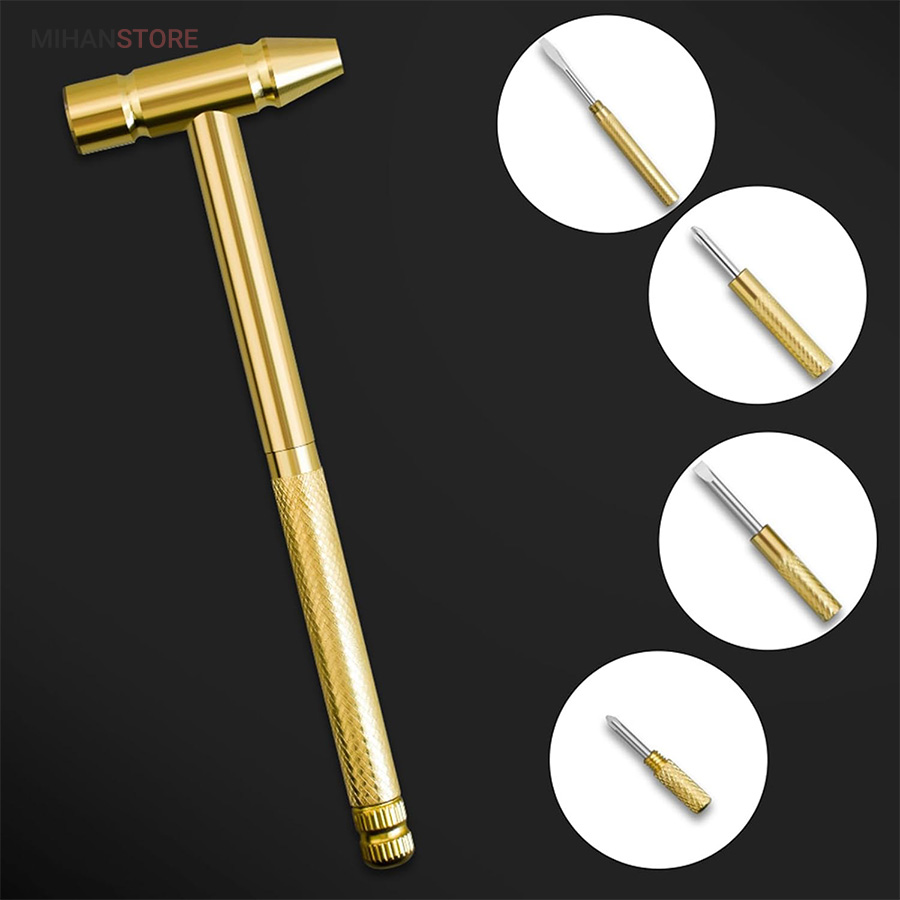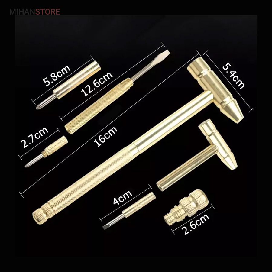 محصولی جدید ، کاربردی و البته با طراحی ظاهری زیبا است که تولید شده از جنس فلز مقاوم با تنوع رنگ طلایی می باشد . این کالا در حالت معمول یک چکش کوچک به طول کلی 16 سانتی متر با سری 5.4 سانتی متری است که از آن می توانید برای کارهای کوچک نظیر زدن میخ به دیوار استفاده کنید. اما تمام وجه تمایز کالا درون چکش است. اگر به جز چکش به پیچ گوشتی نیاز پیدا کردید ، کافی است انتهای دسته چکش را به صورت پیچی باز کنید ، خواهید دید یک پیچ گوشتی دو سر از درون آن خارج می شود که می توانید متناسب با نیاز ، آن را به کار گیرید .اما اگر به یک پیچ گوشتی کوچک چهار سو نیاز داشتید ، نگران نباشید ، انتهای دسته پیچ گوشتی دو سو را باز کنید ، یک پیچ گوشتی چهارسو را خواهید دید که نیاز شما را پاسخ خواهد داد ، ولی این چکش و پیچ گوشتی مجهز تر از آن است که تصور می کنید . انتهای پیچ گوشتی چهار سو یک مینی پیچ گوشتی دو سوی دیگر نیز تعبیه شده که در انتهای خود یک پیچ گوشتی ریز چهار سو دارد ، بدین ترتیب محصول شامل یک چکش و چهار پیچ گوشتی با سایز های متنوع تعبیه شده درون دسته خود می باشد که در بنا بر نوع نیاز می توانید از آنها استفاده کنید . سهولت در حمل و جابه جایی و نیاز به کمترین فضای ممکن برای نگهداری از جمله خصوصیات دیگر چکش پیچ گوشتی دار به شمار می رود .