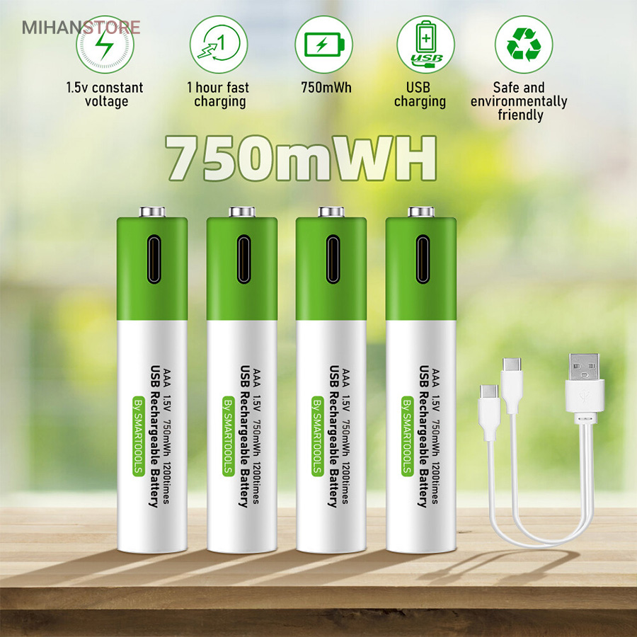 باطری قلمی قابل شارژ همچون یک پاور بانک عمل نموده و به راحتی قابل شارژ می باشند ، کابل شارژ باتری از نوع Type_C بوده و کافی است طرف USB را به دستگاه تامین کننده برق وصل نمایید تا ظرف 1-1.5 ساعت باتری ها شارژ شوند این باتری ها با قابلیت ۱۲۰۰ مرتبه شارژ از طول عمر بلند مدتی برخوردارند . مناسب برای ؛ مسواک های برقی ، ریموت کنترل ، ماوس بیسیم ، ماشین حساب ، گوشی تلفن ، اسباب بازی ها و ... میباشد این باتری ها دارای استانداردهای کیفیت CE & FCC میباشند .